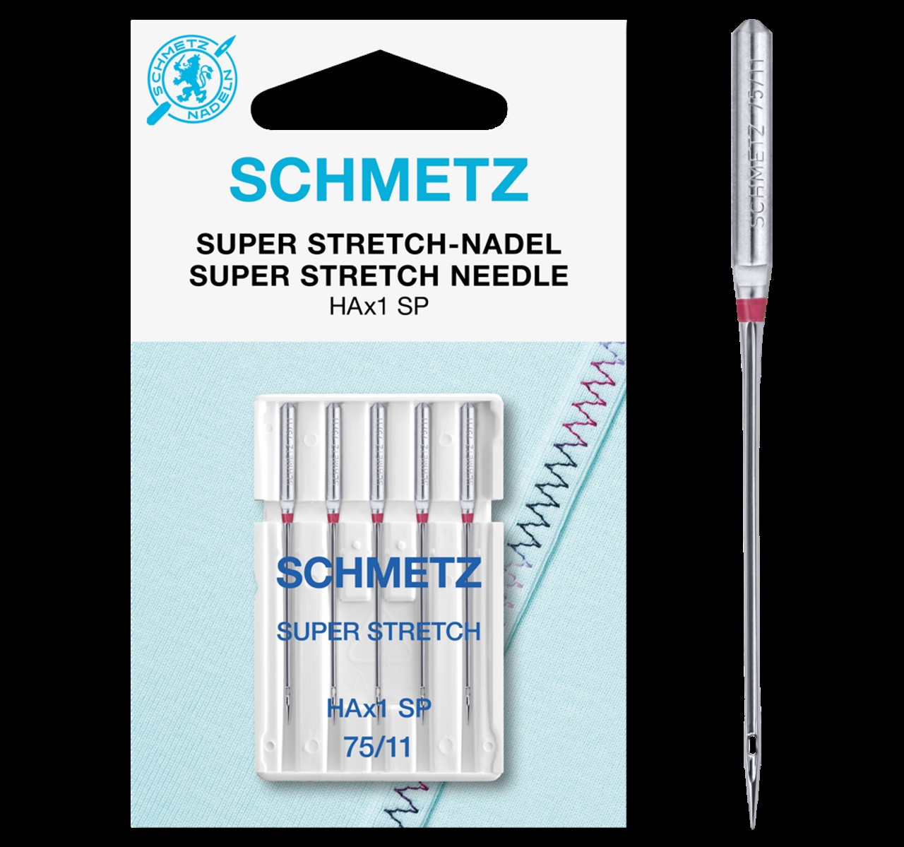 System HAx1SP Schmetz Overlock Needle HAX 1SP are medium ball point needles suitable for elastic material and knitted fabric